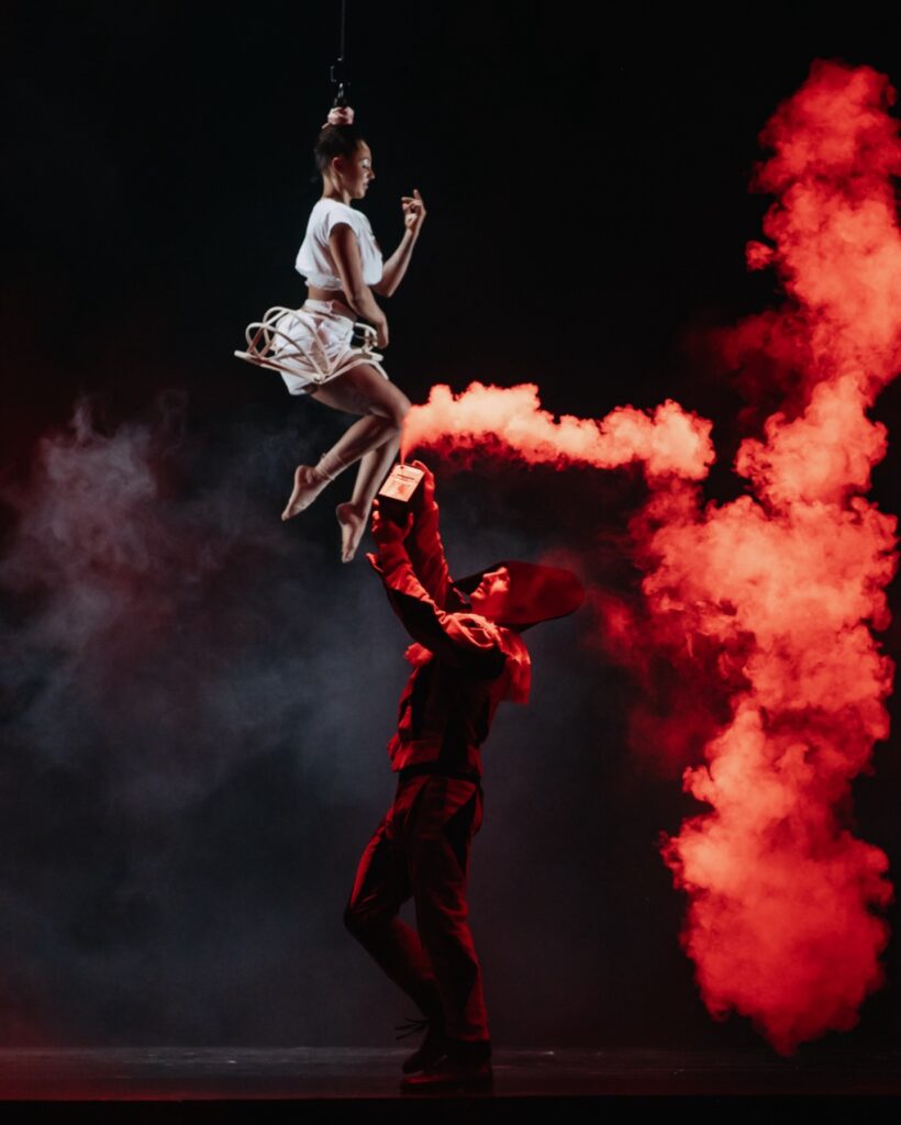 Sobre el escenario, once artistas multidisciplinarios dan vida a esta propuesta que fusiona teatro, circo contemporáneo, música y acrobacia. Cada movimiento, cada silencio y cada imagen están diseñados para provocar asombro, evocando sensaciones que permanecen más allá de la función.